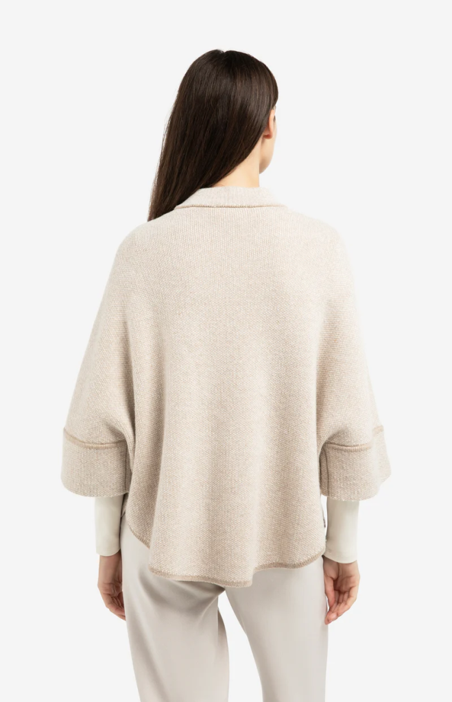 Dit elegante poncho-vest is jacquard gebreid en heeft een oversized pasvorm met ronde zoom. De driekwart mouwen en het zachte materiaal zorgen voor een comfortabele en stijlvolle uitstraling. Afgewerkt met een subtiele kraag en zichtbare naaddetails voor een moderne touch. Ideaal voor laagjeslooks.