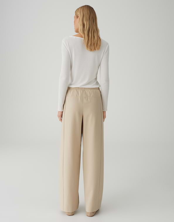Dit seizoen houden we van broeken met een wijde, vloeiende snit en een elegante satijnen afwerking die moderne accenten zetten met een zijnaad die naar voren is verplaatst. De comfortabele elastische tailleband, het kreukvrije materiaal en het aangename gevoel tegen de huid maken onze MELANE FLOW perfect voor in de stad.