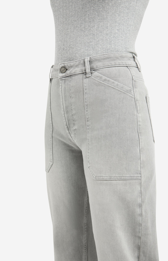 Deze denim cargo jeans is uitgevoerd in een stevige kwaliteit met een zachte wassing. Het model heeft een hoge taille, een laag kruis en een losse pasvorm met rechte, wijde pijpen. De opgestikte zakken aan de voorkant geven een stoere twist. Voorzien van steekzakken, achterzakken en riemlussen.