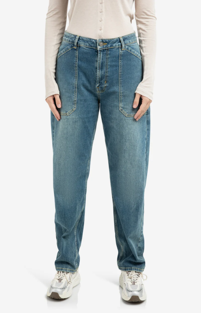 Deze denim cargo jeans is uitgevoerd in een stevige kwaliteit met een zachte wassing. Het model heeft een hoge taille, een laag kruis en een losse pasvorm met rechte, wijde pijpen. De opgestikte zakken aan de voorkant geven een stoere twist. Voorzien van steekzakken, achterzakken en riemlussen.