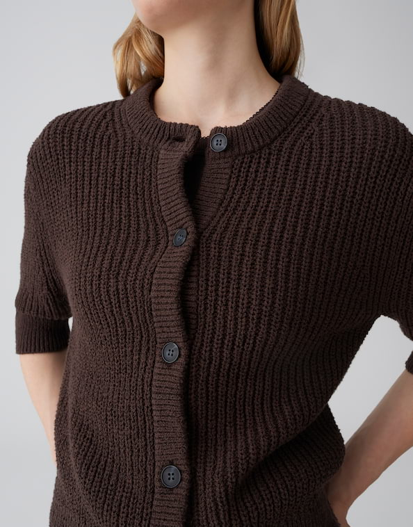 Modern, vrouwelijk, ongecompliceerd: Het DONOUSA vest met halve mouwen zet frisse accenten voor het seizoen met fancy garen en een nauwsluitende pasvorm. In combinatie met een comfortabele broek zorgt het voor een gemakkelijke dagelijkse styling die comfort en stijl combineert.