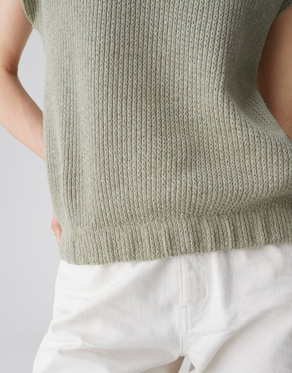 Het moderne ontwerp en de luchtige snit geven de mouwloze jersey top SOFRANO een frisse, lichte uitstraling. De top met gebreide look kan casual worden gedragen met jeans of als ongecompliceerd laagje onder een blouson of vest.