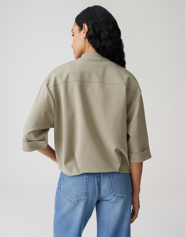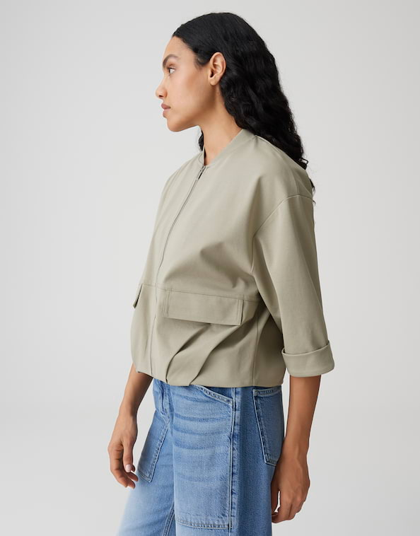 De voorjaarsblouson van GOROS, gemaakt van een zachte katoenmix, heeft moderne plooidetails aan de zoom die de karakteristieke ballonvorm benadrukken. De korte mouwen en sportieve accenten maken dit jack tot een veelzijdige favoriet voor urban styles.