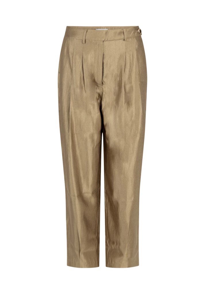 Deze broek heeft een verfijnde, moderne uitstraling met een duidelijke focus op pasvorm. De rechte pijpen geven het ontwerp een cleane, geklede look. De middelhoge taille zorgt voor een comfortabele fit, waardoor de broek geschikt is voor zowel zakelijke outfits als meer casual combinaties. een mooie combinatie met de broek is de Minny top.