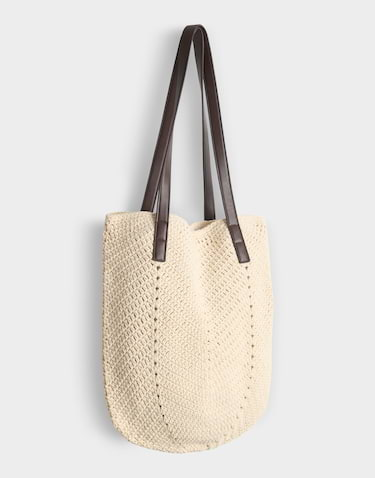 De shopper tas maakt indruk met zijn gehaakte look, geïnspireerd op de boho-stijl, en zet opvallende accenten met contrastkleurige banden van imitatieleer. De ruime snit en het ongewone ontwerp maken deze tas tot een favoriet accessoire voor stedelijke avonturen.