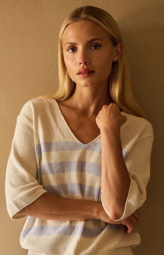 Deze maand vaart onze collectie een nieuwe koers, geïnspireerd door maritieme charme en subtiele nautische accenten. Stijlvolle strepen verwijzen naar het leven aan dek, maritieme knopen accentueren zachte silhouetten en lichte kleuren vangen het kalme gevoel van de zee. Van diep marine tot ijsblauw: deze collectie is een ode aan de zee.