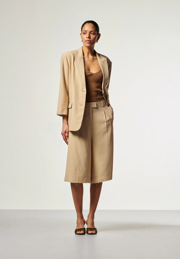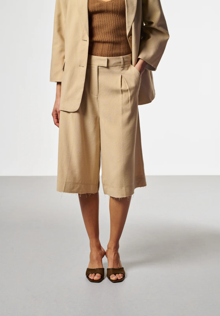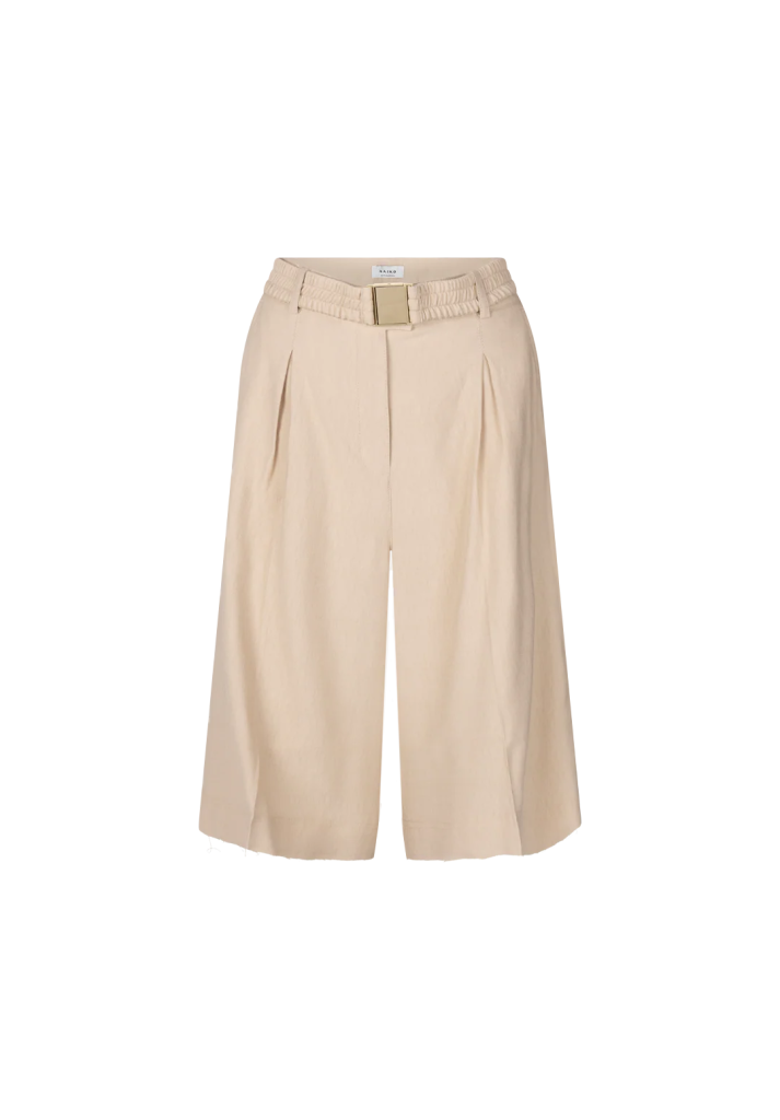 De Inaya shorts is uitgevoerd in een luchtige, soepelvallende stof en heeft een elegante uitstraling. Het model valt tot over de knie en is voorzien van plooidetails aan de voorzijde voor een vrouwelijk silhouet. De elastische tailleband met gespdetail zorgt voor extra comfort en een moderne touch.