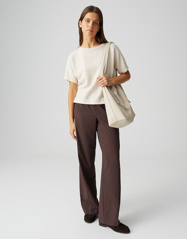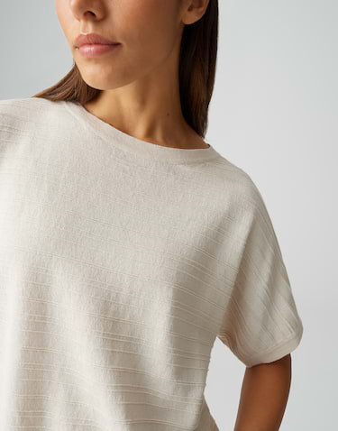 Deze fijn gebreide top met zijn fijne structuur en subtiele horizontale streepdessin maakt elke look luchtig. De luchtige stof maakt het de perfecte metgezel op warme dagen, of je het nu solo draagt of in een ontspannen laagje.