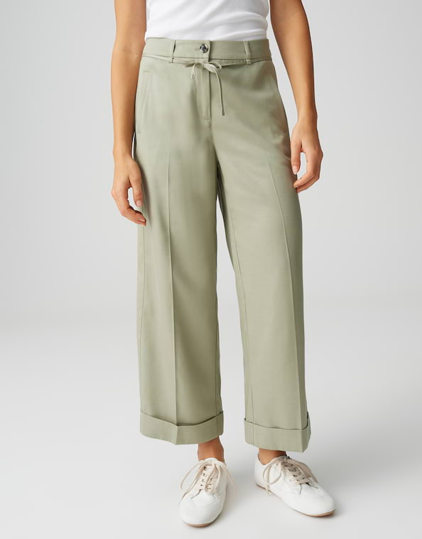 Met klassieke turn-ups en een discrete riem met band is deze stadsbroek uiterst comfortabel om te dragen en biedt hij flexibele stylingopties. De lichtgewicht lyocell stof en moderne snit maken het de perfecte dagelijkse metgezel.