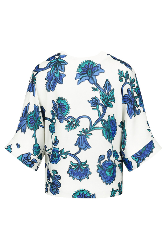 De Madison flower top van Studio Anneloes is een luchtige en vrouwelijke top met een bloemenprint in de kleuren Electric Blue, White en Grass Green. De regular fit en de soepele viscose mix zorgen voor een comfortabele pasvorm, terwijl de V-hals en driekwart mouwen het ontwerp een elegante uitstraling geven.
