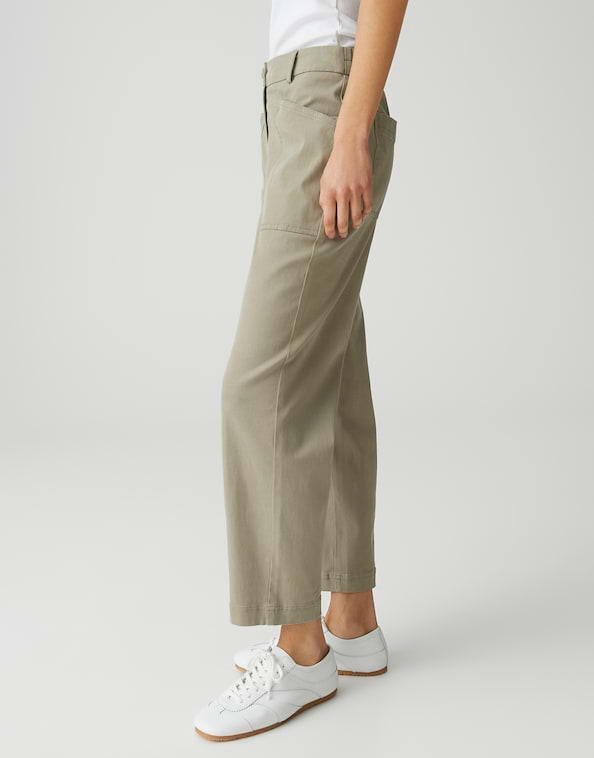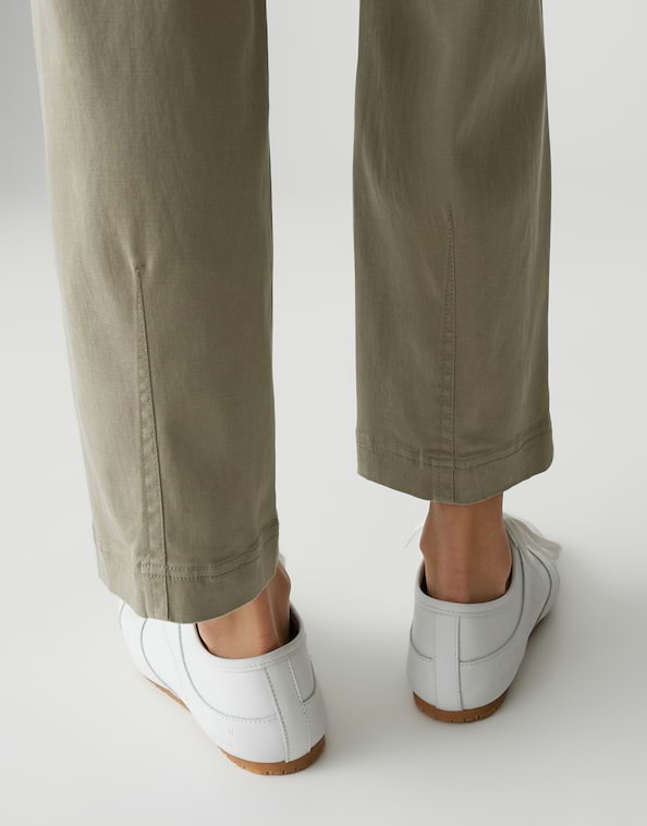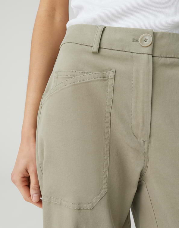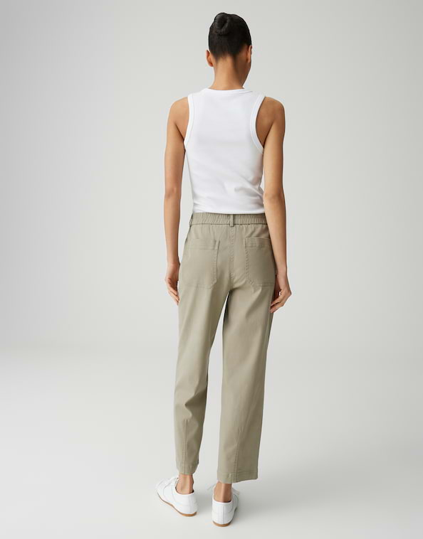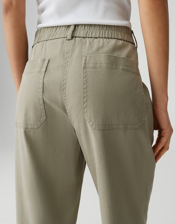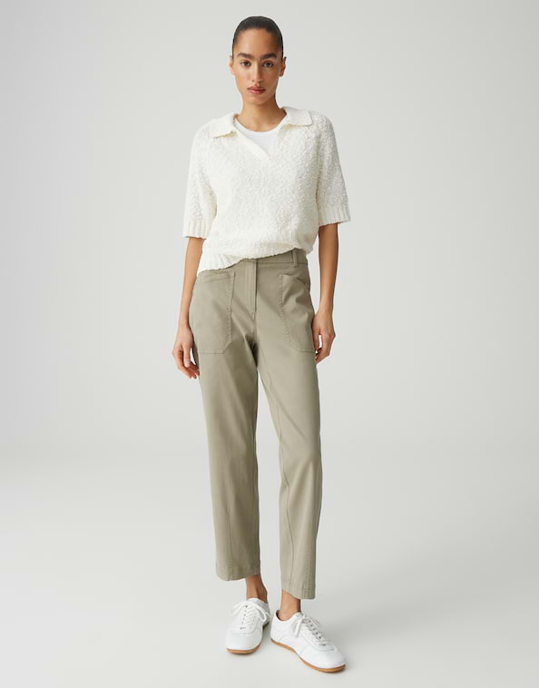 Subtiele structuur en vloeiende kwaliteit kenmerken het moderne silhouet van de city pant en brengen comfort in een elegante vorm. De elastische tailleband met aantrekkoord, het fijne keperstofoppervlak en de nauwkeurig geplaatste naden maken hem tot een veelzijdige stylingpartner die zorgt voor een ontspannen maar professionele look met een gebreide trui of blouse.