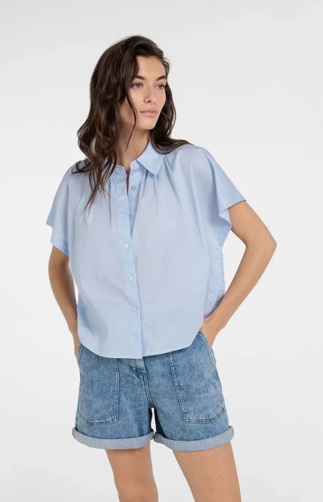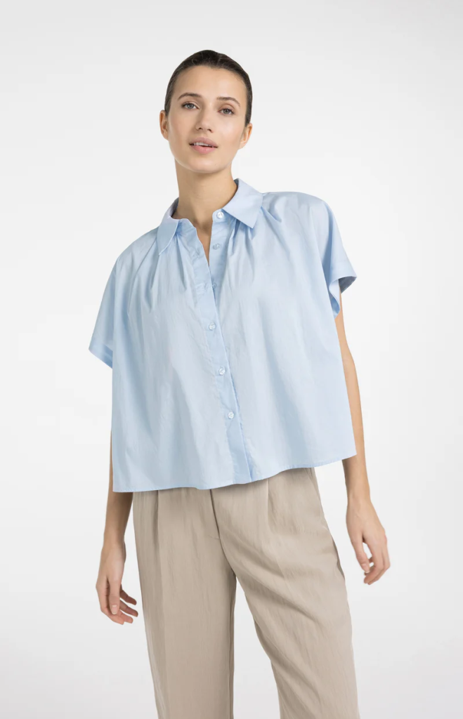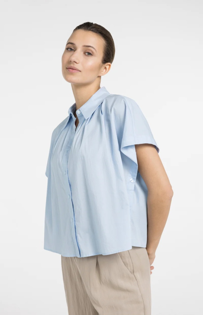 Deze luchtige, mouwloze blouse is gemaakt van een soepele, geweven stof en heeft een losse pasvorm. Het model is voorzien van een klassieke kraag, knoopsluiting en verfijnde plooidetails op de rug. De knoopdetails langs de zijnaden geven een speels accent.