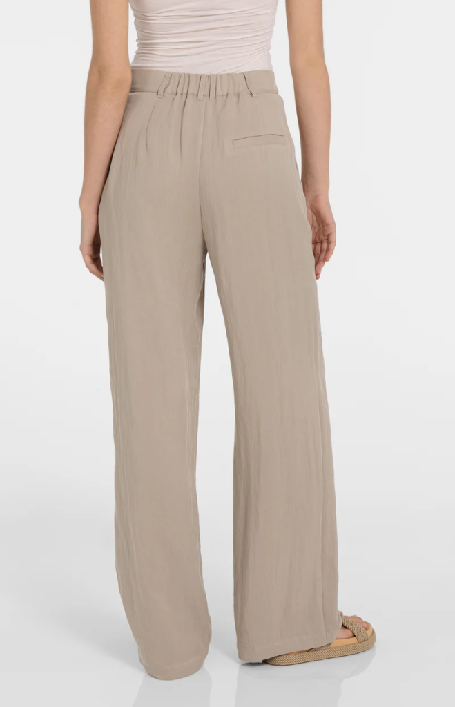 Deze luchtige broek is gemaakt van een soepele geweven stof en heeft een normale pasvorm met wijde pijpen. De plooien aan de voorzijde zorgen voor een elegante uitstraling, terwijl de elastische tailleband aan de achterkant extra comfort biedt. Voorzien van steekzakken en een paspelzak achter