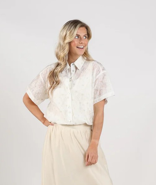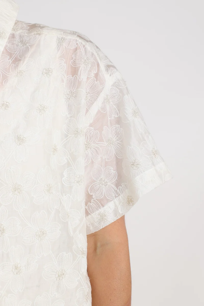 Een luchtige en vrouwelijke blouse van Nukus die perfect past bij het voorjaar. De Britt blouse flower heeft een subtiel doorschijnende stof met fijn geborduurde bloemen, wat zorgt voor een romantische en elegante uitstraling. Dankzij de zachte Tencel mix voelt de blouse licht en comfortabel aan op de huid. De verfijnde embroidery geeft het item een speels en stijlvol detail zonder te overheersen. Hierdoor is de blouse makkelijk te combineren binnen je voorjaarsgarderobe. Draag hem met een lange rok voor een vrouwelijke look of combineer met een jeans voor een stoerdere outfit.