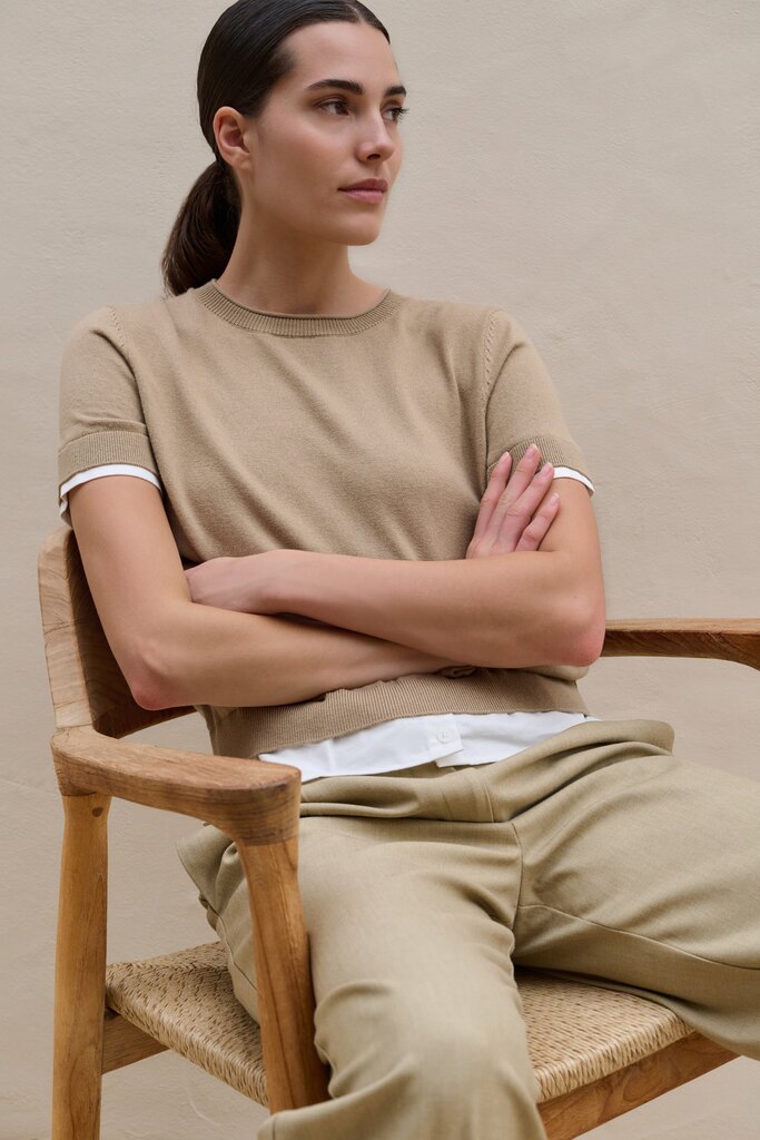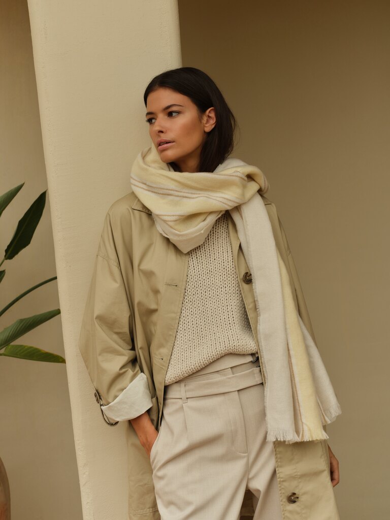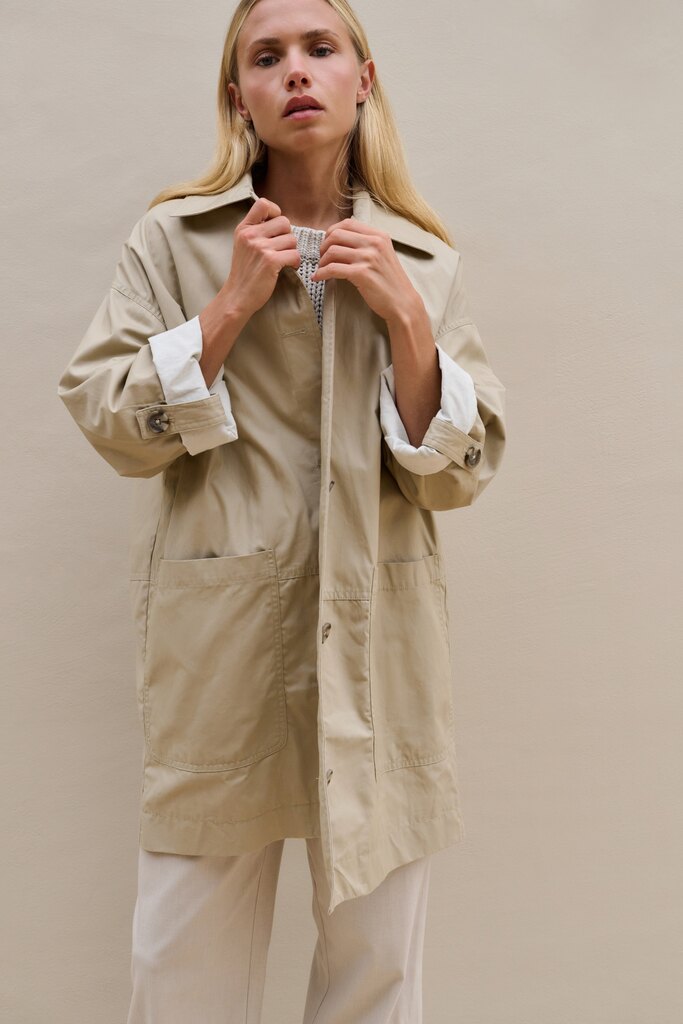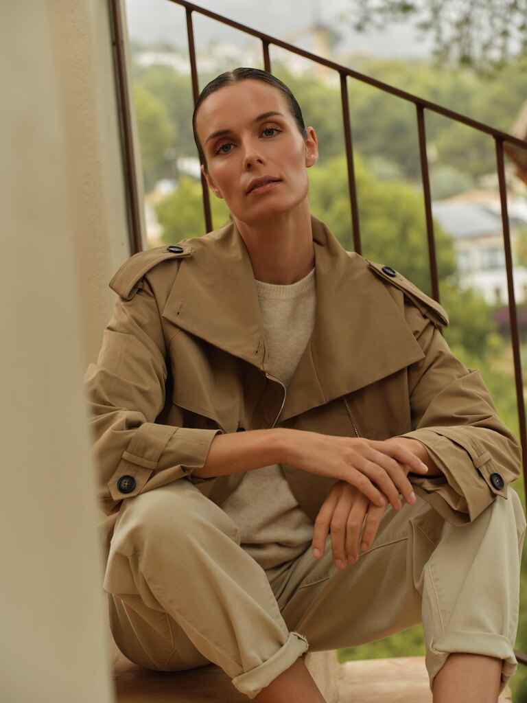 Onze nieuwe collectie vindt haar kracht in contrast, waarbij cargo-invloeden samenkomen met zachte, vrouwelijke details. Klassieke silhouetten krijgen een nieuwe twist met geaccentueerde tailles, speelse zakken en verfijnde prints. De tijdloze trenchcoat keert terug als key piece, gedragen over zachte lagen voor een stijlvolle balans.