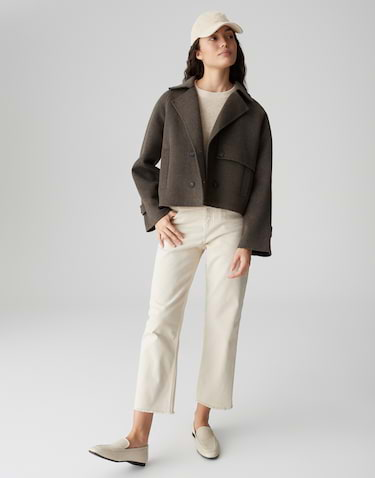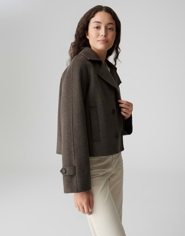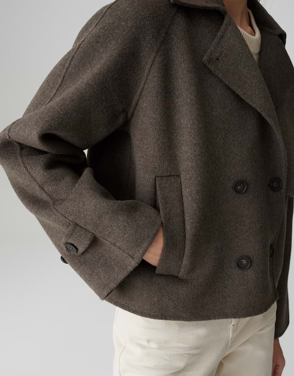 De Urban Chic trenchcoat is een double-breasted korte jas gemaakt van een superzachte dubbele wolmix, met handgestikte naden die de hoge kwaliteit benadrukken, terwijl de ongevoerde A-lijn casual vrouwelijke elegantie uitstraalt.