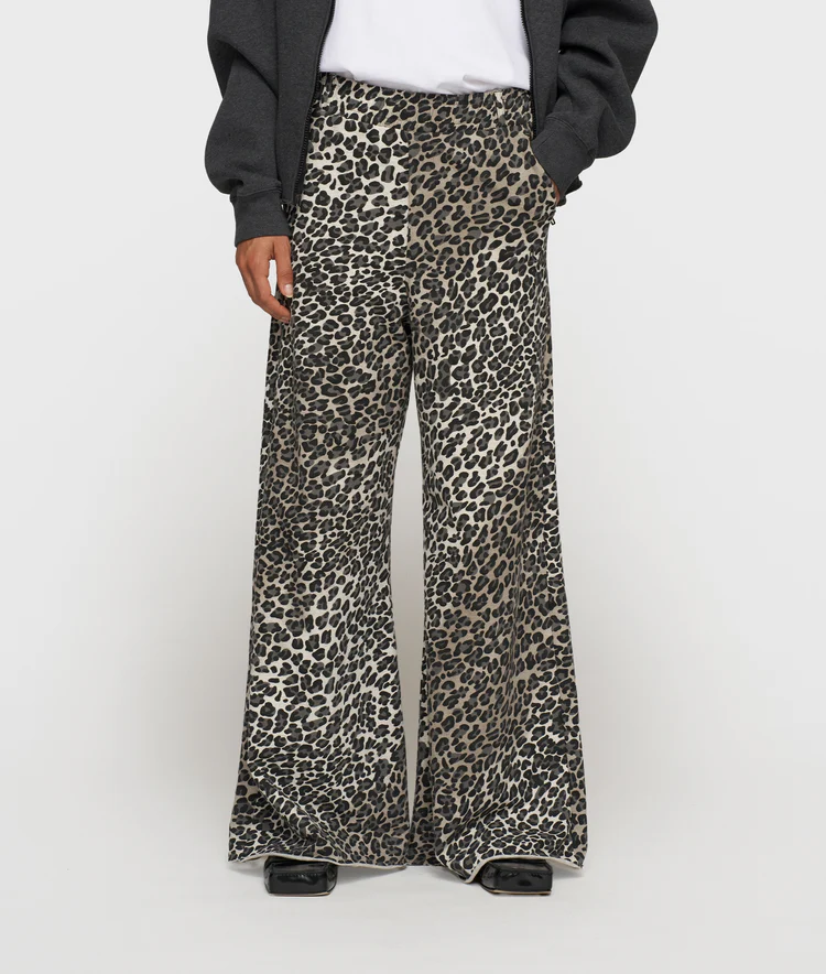 Regular fit wijde jogger leopard, gemaakt van zacht GOTS-gecertificeerd biologisch katoenen fleece. Voorzien van een elastische tailleband met riemlussen, schuine steekzakken en een '10' monogram borduring onder de linker steekzak.