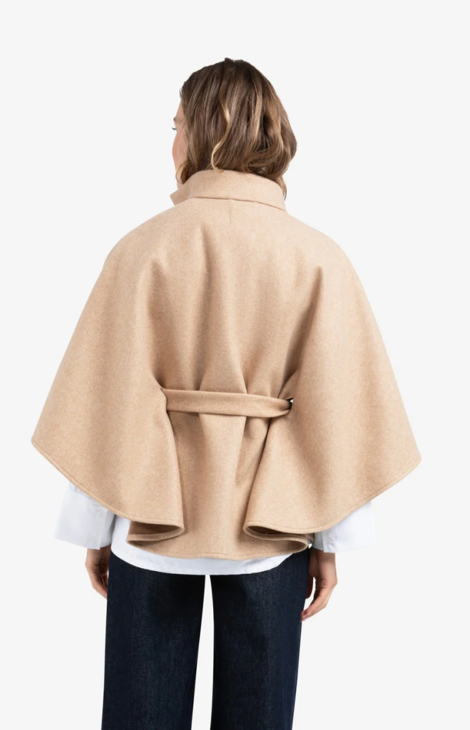 Deze elegante poncho is gemaakt van een zachte, geweven stof en is voorzien van een opstaande kraag en een ceintuur in de taille. De wijde pasvorm zorgt voor een comfortabele en stijlvolle look. Een verfijnd item dat warmte en elegantie combineert.