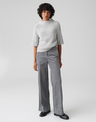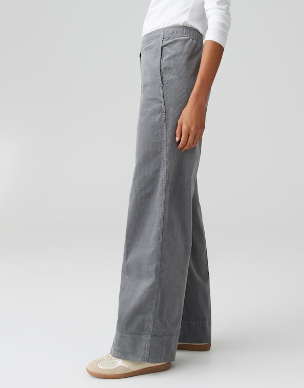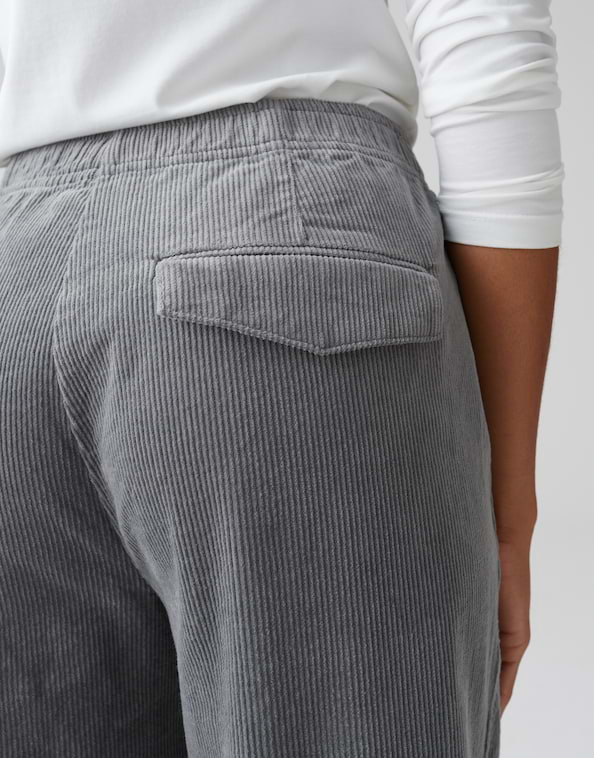 Deze corduroy broek heeft een coole casual look, terwijl de wijde, lange pijpen het figuur flatteren en de elastische tailleband voor extra comfort zorgt. Hij is perfect te combineren met oversized knitwear voor een trendy outfit.