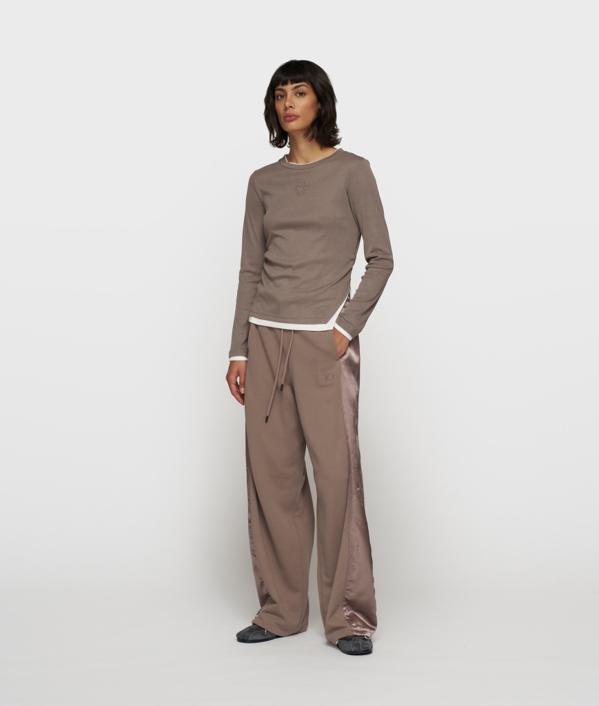 Slim fit long sleeve top, gemaakt van comfortabel katoenen ribjersey. Voorzien van plooidetails in de zijnaden, dubbele laag boorden, split in de linkerzij en een curly '10' borduring op de borst.