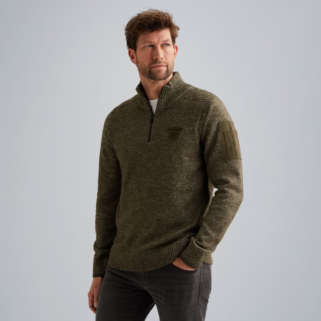 Een perfecte layering piece voor allerlei gelegenheden. Deze PME Legend trui is gemaakt van een comfortabele katoenblend. De flight pocket in een contrastkleur op de mouw en de halve rits geven dit item een moderne PME Legend look. De kenmerkende PME Legend details zorgen voor de finishing touch.
