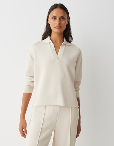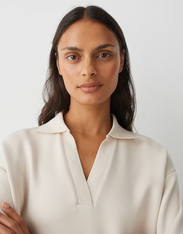 Het GYHA sweatshirt combineert een sportieve look, activewear en loungewear tot een veelzijdige must-have voor elke dag. De open polokraag, zachte sweatstof en elastische geribde boorden zorgen voor casual comfort