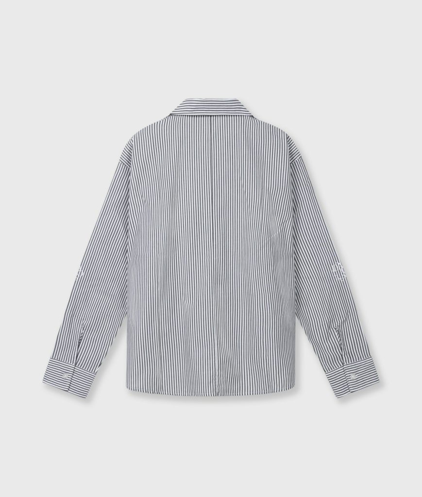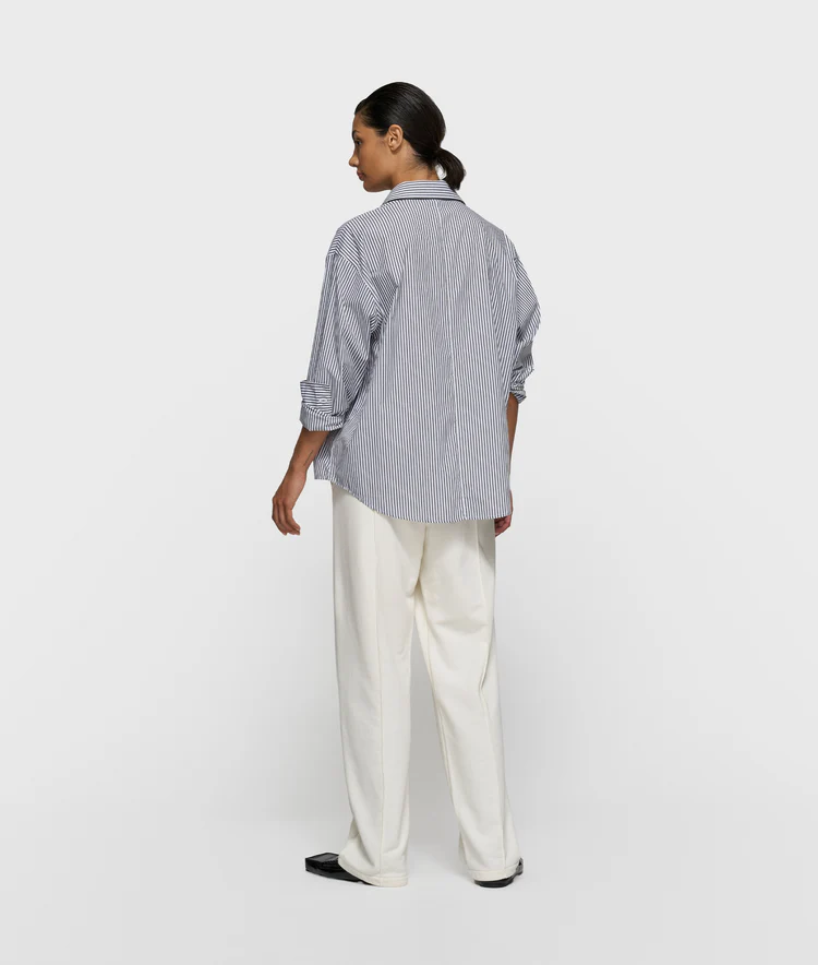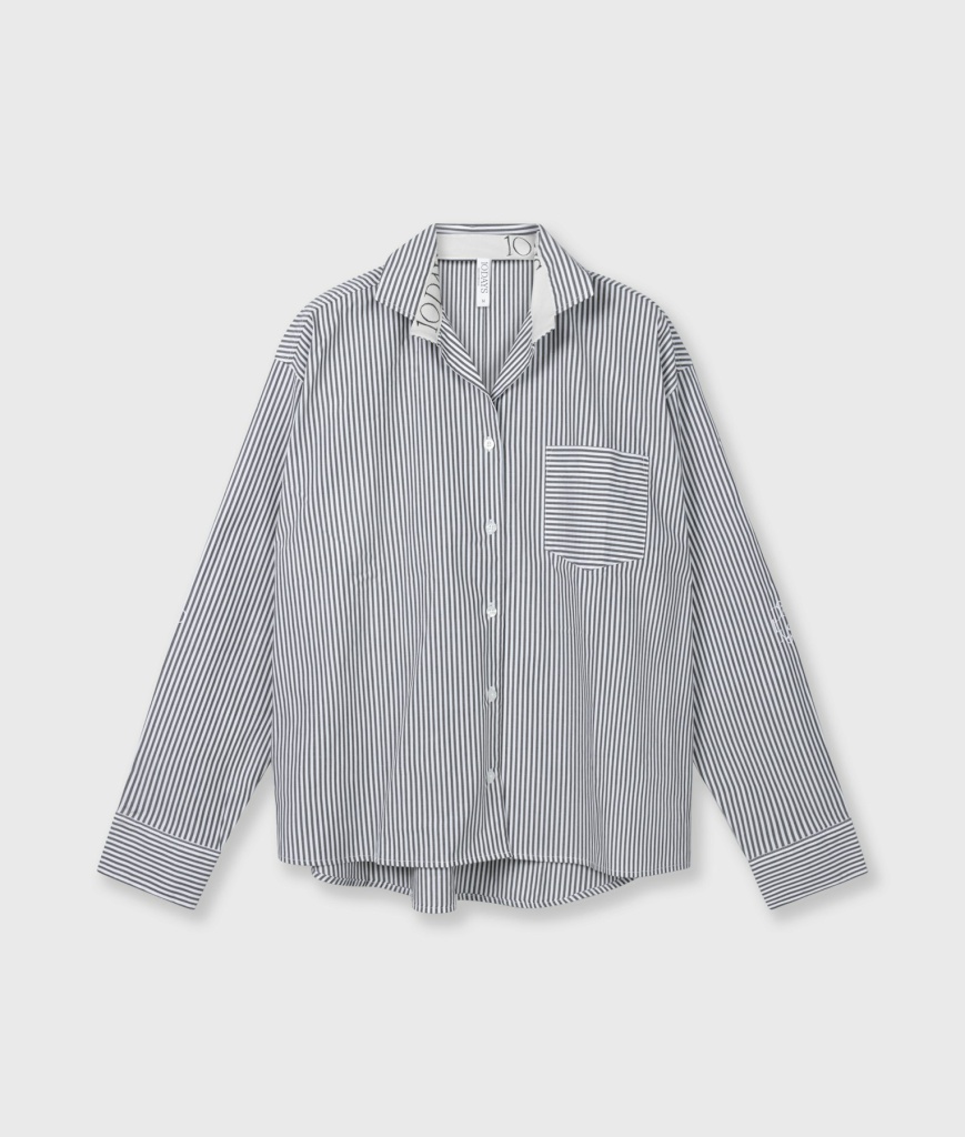 Relaxed fit blouse met strepen, gemaakt van GOTS-gecertificeerd biologisch katoen. Voorzien van een knoopsluiting, een opgestikte borstzak, manchetten met knoop en een 'curly 10' print op beide mouwen.