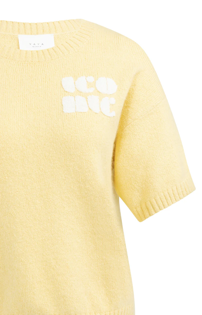 Deze zachte trui heeft korte mouwen, een ronde hals en een losse pasvorm. Het item is afgewerkt met ribgebreide boorden en een speels artwork aan de voorzijde. Op de rug prijkt een subtiel hartje voor een extra charmant detail.