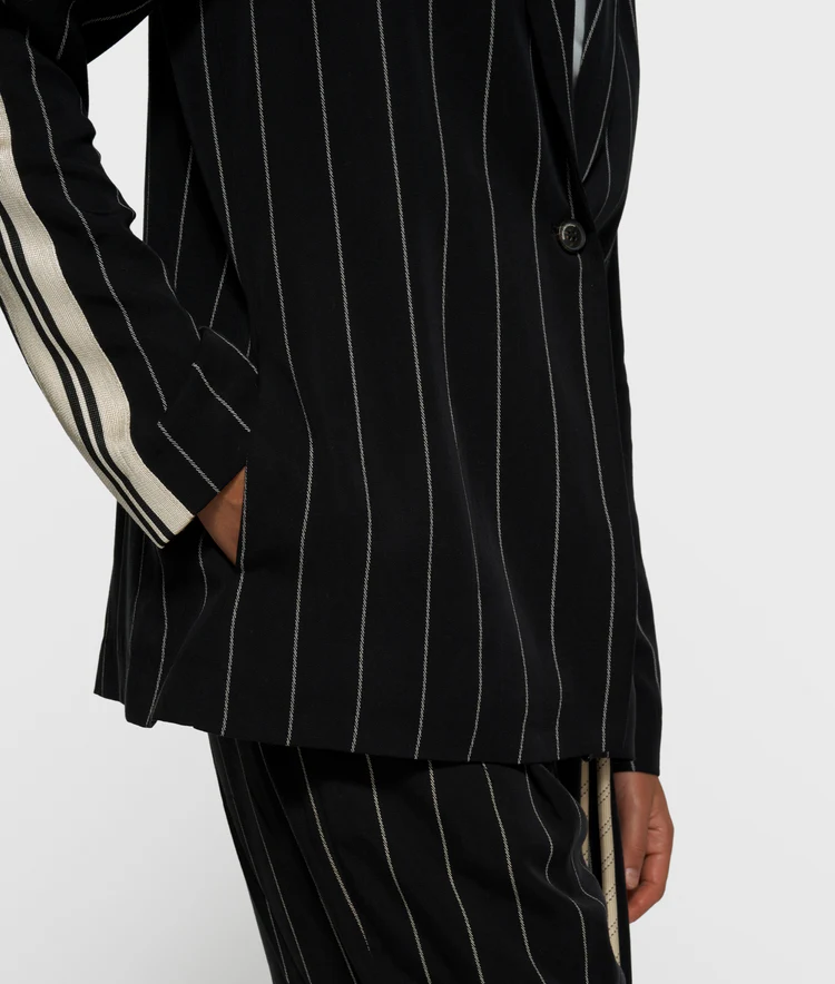 Relaxed fit pinstripe blazer, gemaakt van soepel twill met satijnen voering. Voorzien van een kraag met ‘10’ monogram borduring, steekzakken in de zijnaden, een knoopsluiting, een split aan de achterzijde en tape-details op de mouwen.
