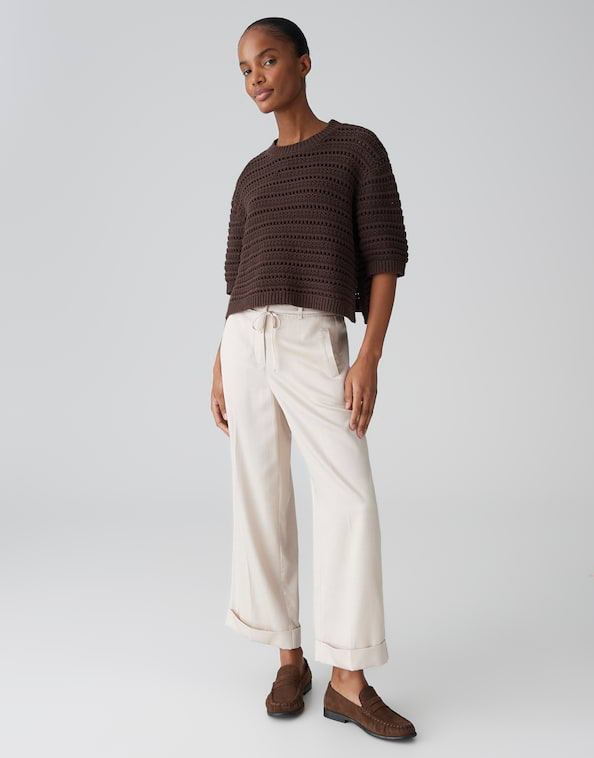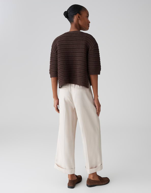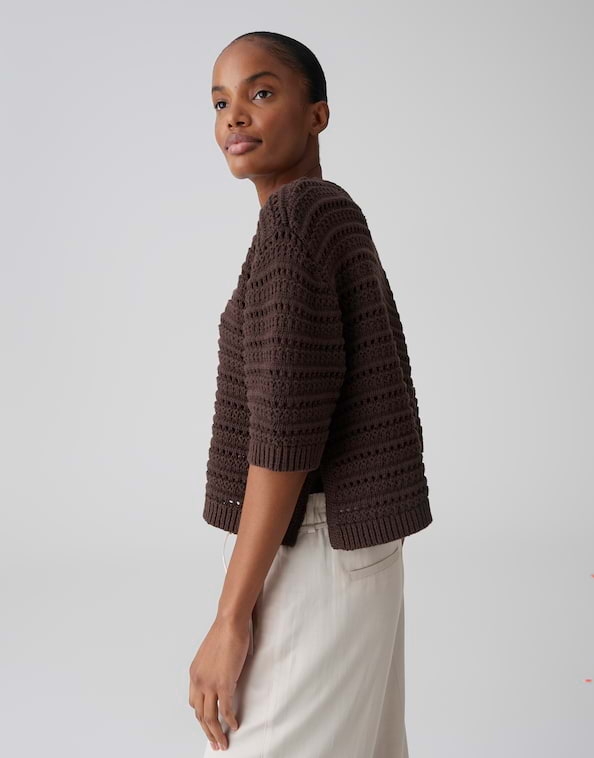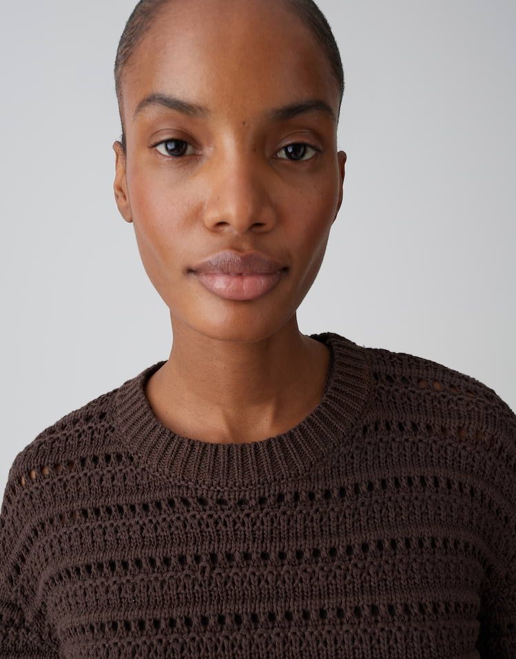 Het korte model en het vakkundig vervaardigde geperforeerde breisel maken van de PLOOMINA trui een echte allrounder voor styling. Met denim voor ontspannen vrijetijdsoutfits of over een eenvoudige top voor geraffineerde layering stijlen, een must-have voor iedereen die houdt van modieuze veelzijdigheid.