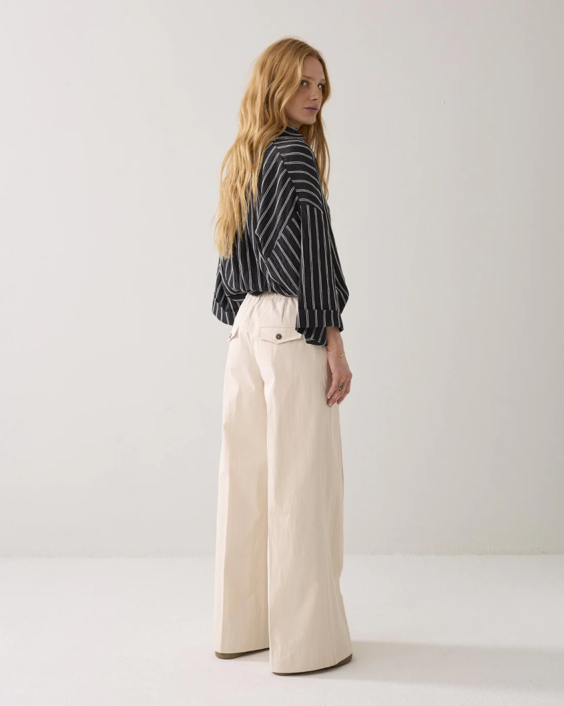 • Wijde pijpen met pintuck