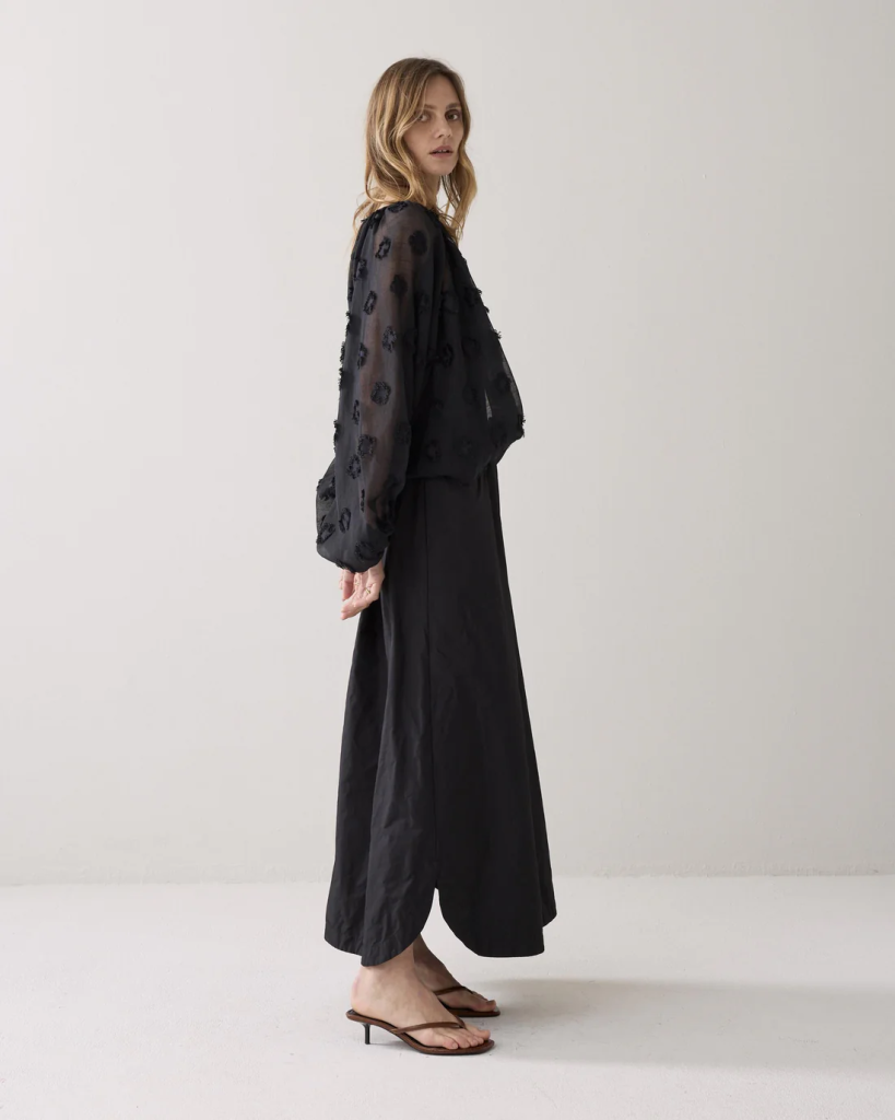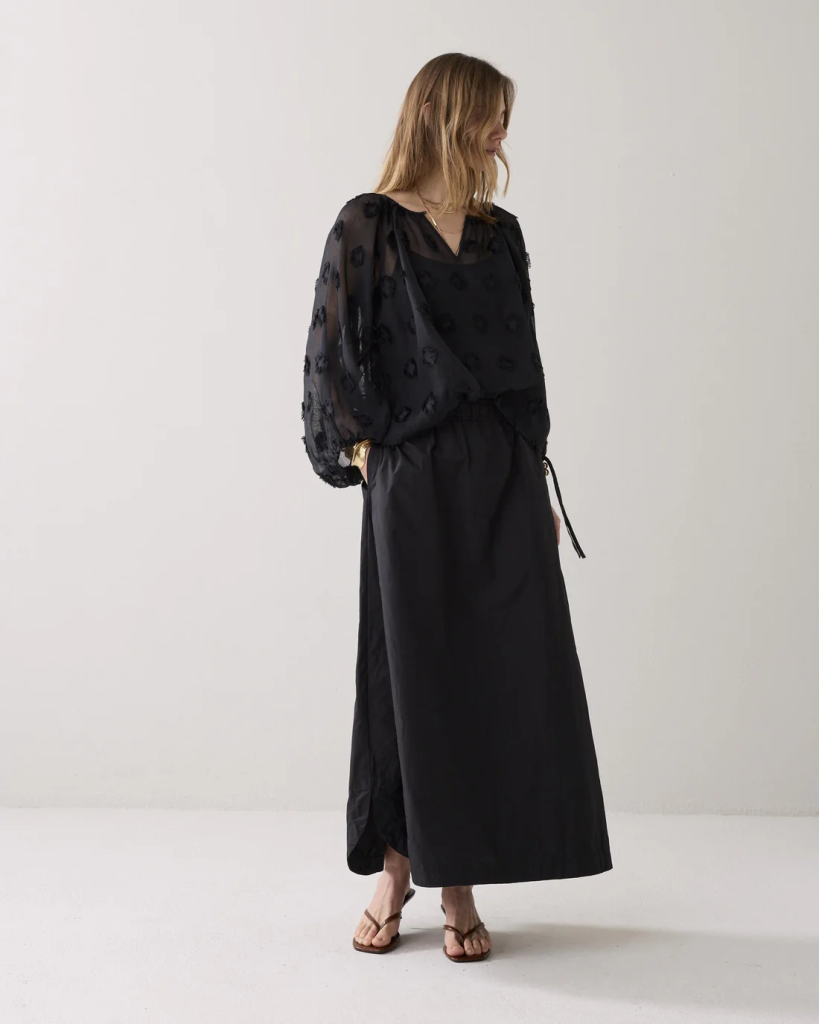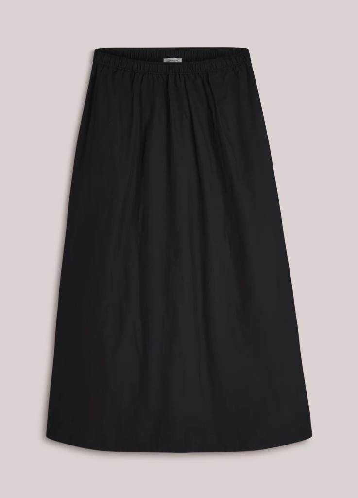 Rok in een stoere taftkwaliteit. De rok heeft een wijde vorm en rondom een elastische taille.