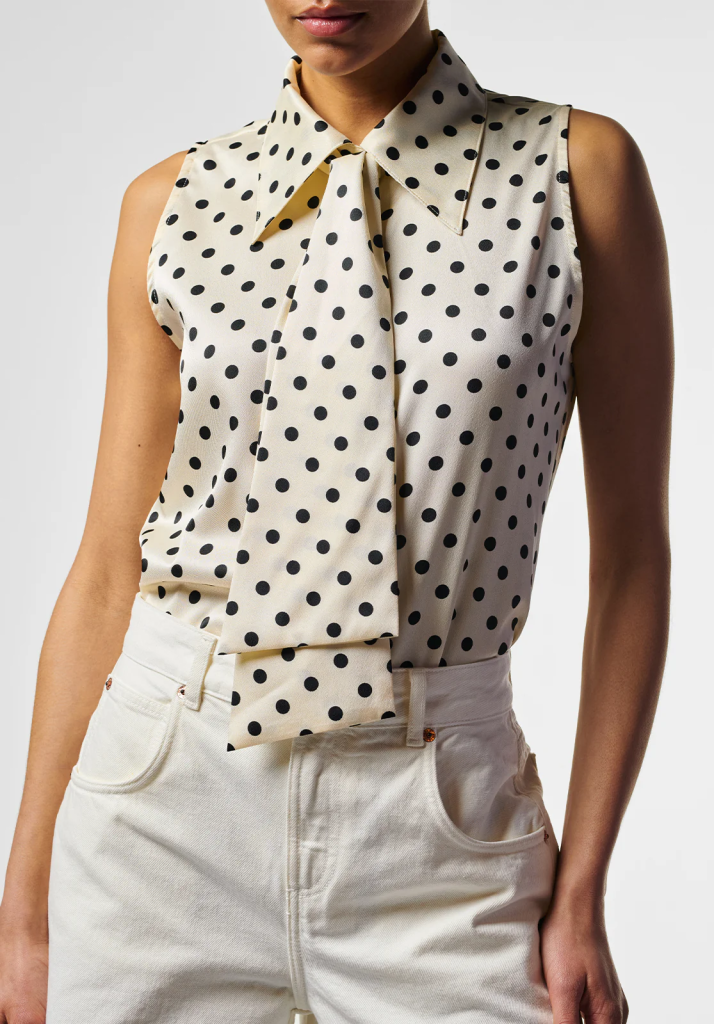Deze blouse heeft een elegante en tijdloze uitstraling. De all-over stippenprint geeft het item een speelse touch, terwijl de strik bij de hals zorgt voor een verfijnde en vrouwelijke look.