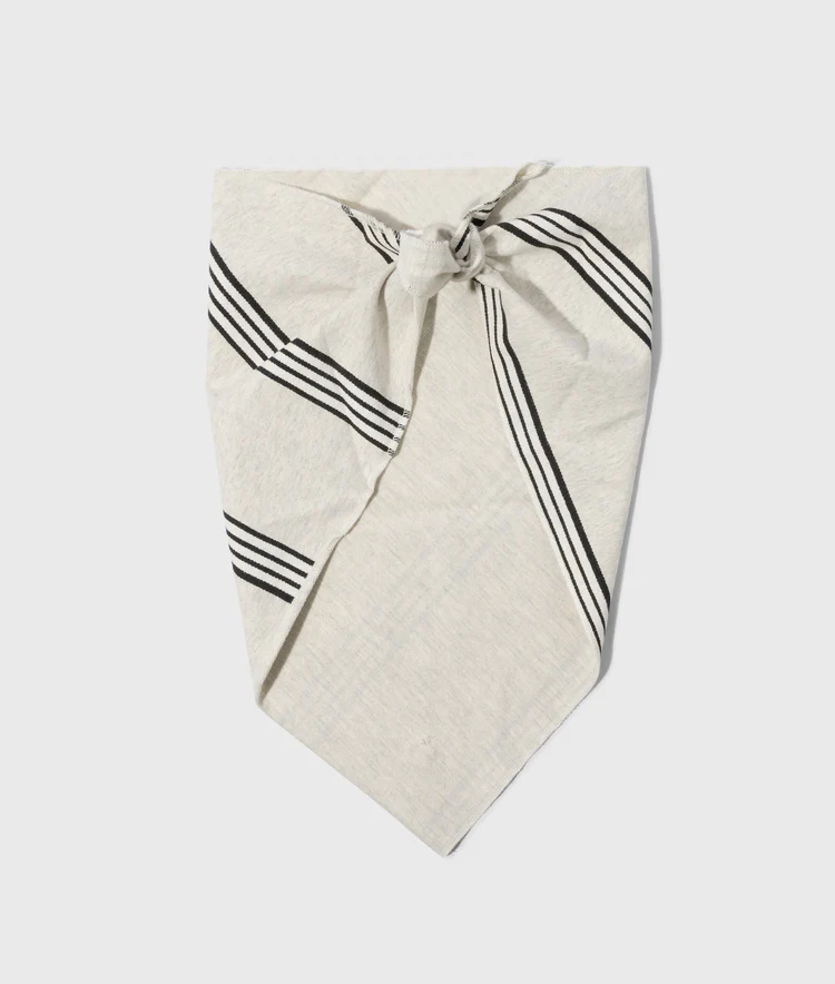 Bandana sjaal met strepen en een ‘10’ monogram kraal, gemaakt van zacht katoenen babyfleece. Afmeting: 40 × 85 cm.