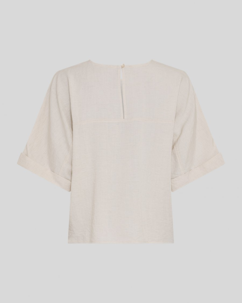 Top met korte mouwen van een lichtgewicht geweven stof. Met ronde hals en knoopsluiting aan de achterkant. Relaxte pasvorm met wijde mouwen en omgeslagen manchetten