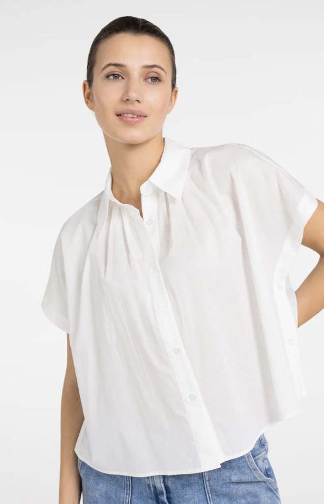 Deze luchtige, mouwloze blouse is gemaakt van een soepele, geweven stof en heeft een losse pasvorm. Het model is voorzien van een klassieke kraag, knoopsluiting en verfijnde plooidetails op de rug. De knoopdetails langs de zijnaden geven een speels accent.