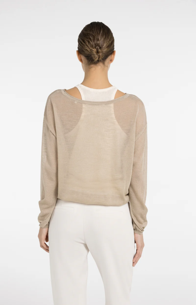 Deze twinset bestaat uit een fijngebreide trui met lange mouwen en een bijpassende singlet. De trui heeft een boothals, een oversized pasvorm en elastische boorden aan de mouwen en zoom voor een subtiel bloezend effect. De singlet kan zowel samen met de trui als afzonderlijk gedragen worden. Een veelzijdige set met een verfijnde uitstraling.