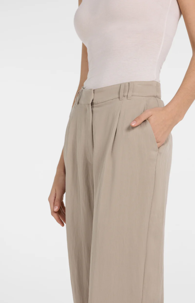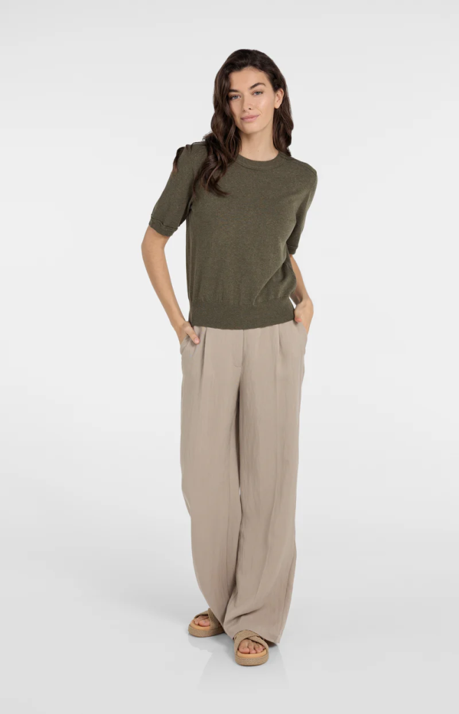 Deze luchtige broek is gemaakt van een soepele geweven stof en heeft een normale pasvorm met wijde pijpen. De plooien aan de voorzijde zorgen voor een elegante uitstraling, terwijl de elastische tailleband aan de achterkant extra comfort biedt. Voorzien van steekzakken en een paspelzak achter