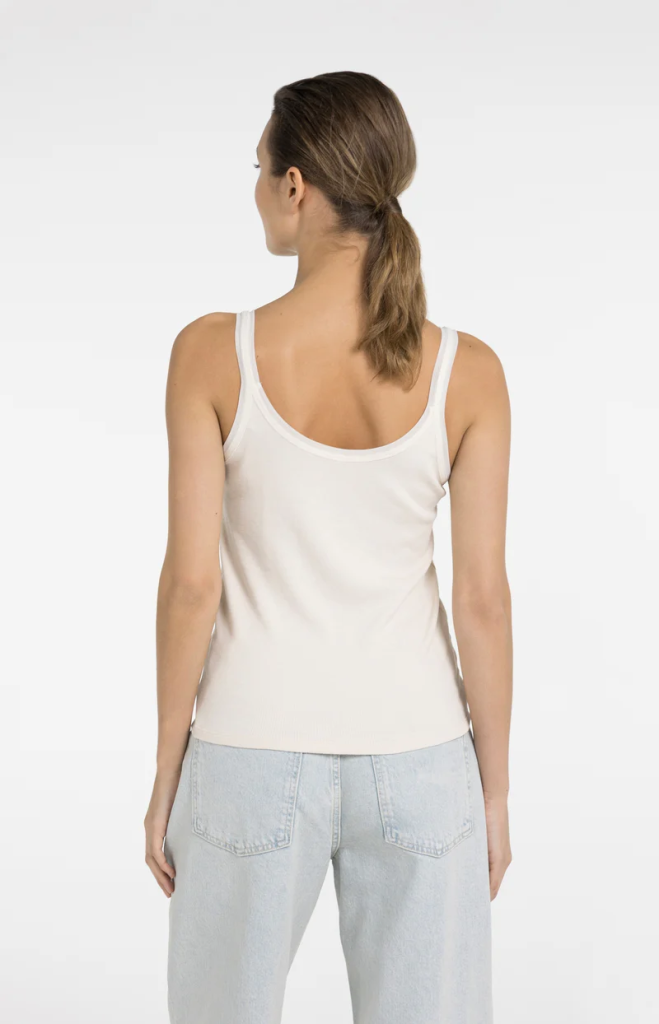 Deze verfijnde singlet heeft brede schouderbandjes, een ronde hals en een aansluitende, vrouwelijke pasvorm. De subtiele mesh afwerking langs de hals en bandjes geeft het item een lichte en moderne uitstraling. De zachte, ribgebreide stof voelt comfortabel aan en maakt deze singlet ideaal om zowel solo te dragen als te combineren onder een blouse, vest of blazer.