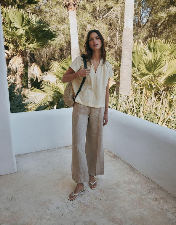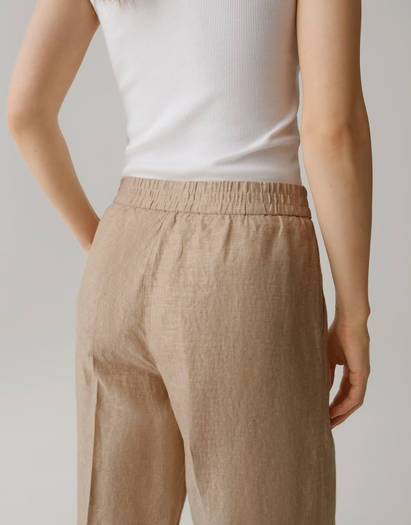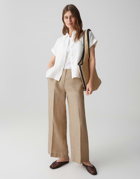 Puur linnen maakt ze aangenaam koel om te dragen en benadrukt de natuurlijke lichtheid van de stadsbroek met een modern silhouet. Perfect te combineren met luchtige blouses, fijne gebreide kleding of cleane tops, creëren ze een look die afwisselt tussen een relaxte zakelijke stijl en een chique stadsoutfit.