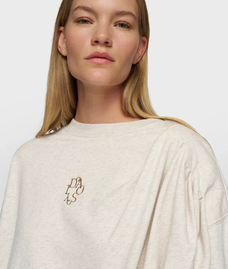 Oversized fit sweater met plooien, gemaakt van zachte light old school katoenen fleece en een zacht jersey binnenvoering. Voorzien van ribgebreide hals en manchetten, lage schouderinzet, ballonshape zoom, plooien van de linkerschouder en een curly '10' borduring op de borst.