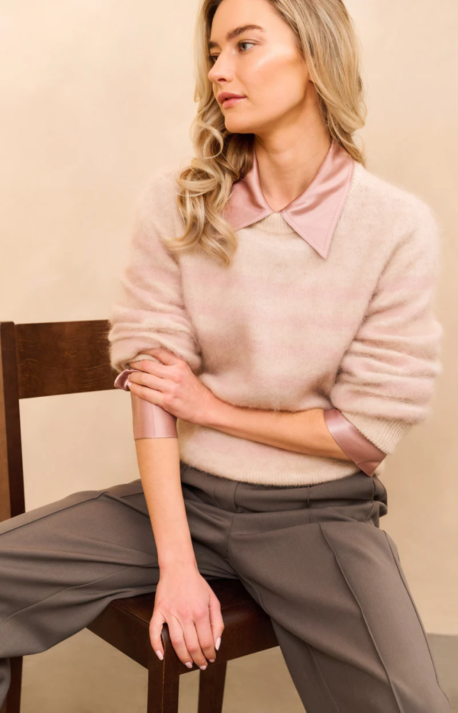 Deze zachte trui is gebreid van een warme wolmix en heeft een klassieke ronde hals, lange mouwen en een rechte pasvorm. Het ontwerp is voorzien van brede strepen in contrasterende kleuren voor een speels effect