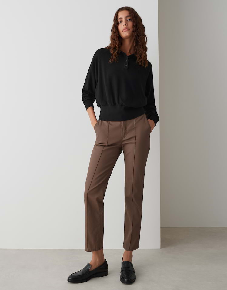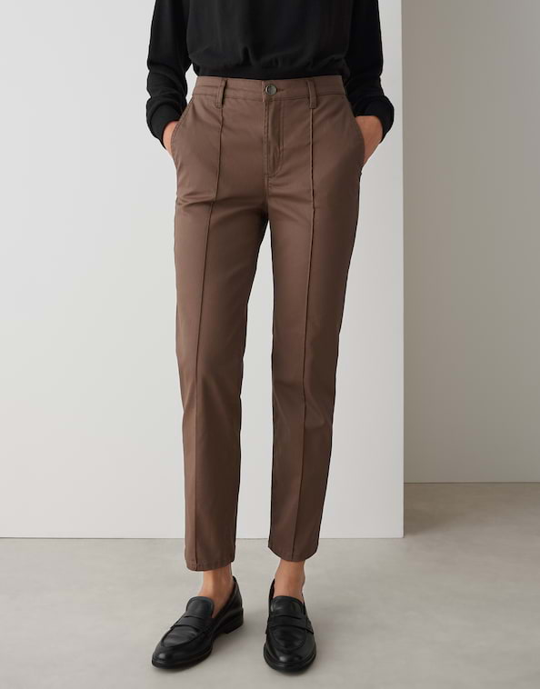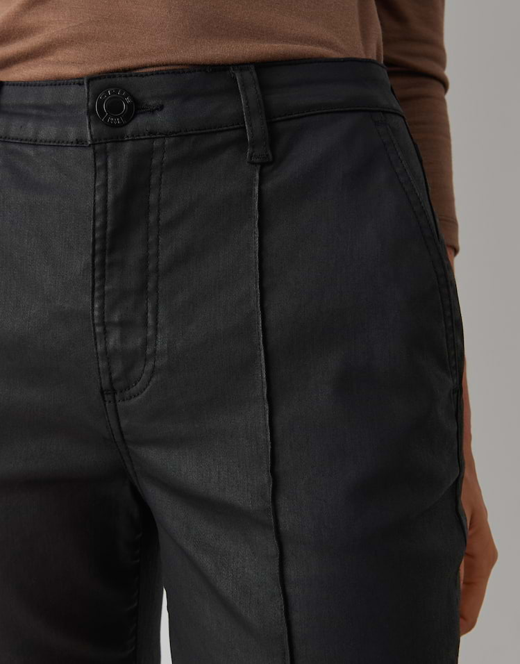Kort uitlopend denim met een zachte coating combineert een authentieke look met een hoog draagcomfort. Als statement piece in een kunstlederlook geven ze elke outfit trendbewustheid.