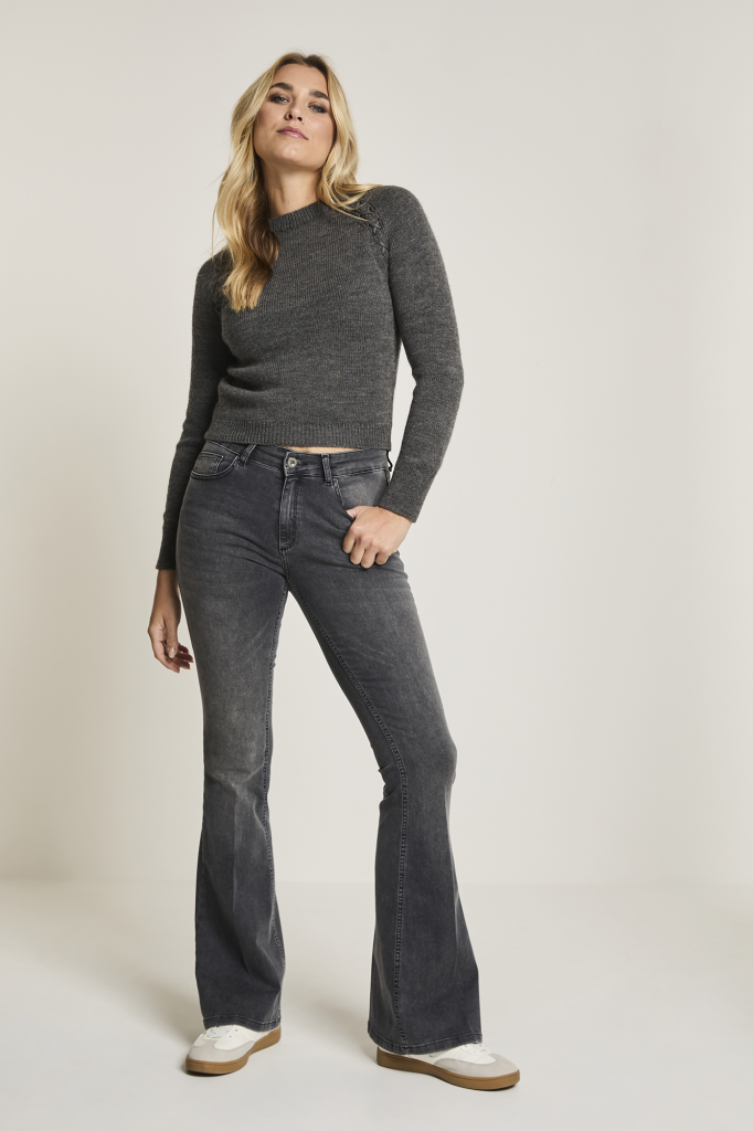 Jade is een broek met een hoge taille en een uitlopende broekspijp. Deze 5-pocketbroek zit bij de bovenbenen aangesloten, vanaf de knie loopt de broekspijp uit. Het is een broek die zowel een vintage uitstraling heeft als een classy. Met hakken maak je hem chic, met sneakers wordt hij meer casual.