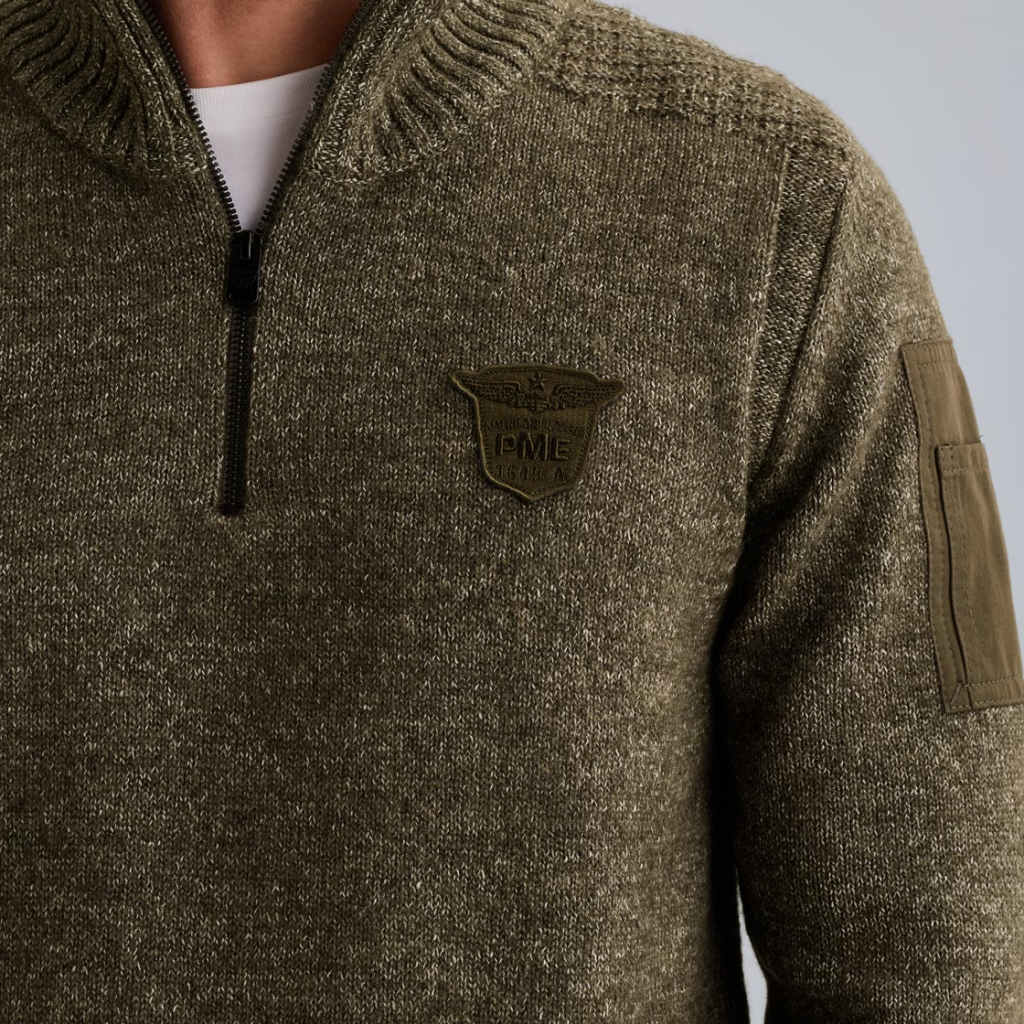 Een perfecte layering piece voor allerlei gelegenheden. Deze PME Legend trui is gemaakt van een comfortabele katoenblend. De flight pocket in een contrastkleur op de mouw en de halve rits geven dit item een moderne PME Legend look. De kenmerkende PME Legend details zorgen voor de finishing touch.