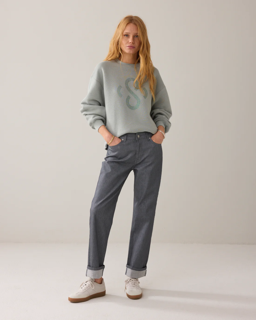 Zachte sweater met een casual fit. De voorkant is versierd met een ton-sur-ton Summum-logo in een rubberachtige glimmende print. De sweater heeft een ronde hals en lange mouwen.