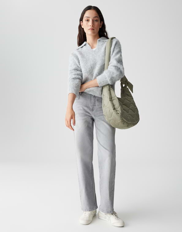 Deze sportieve polo heeft een bewegend, harig breigaren dat het een speciale vrouwelijke twist geeft. Hij is licht maar voelt volumineus aan en biedt verwarmend comfort op koele dagen.