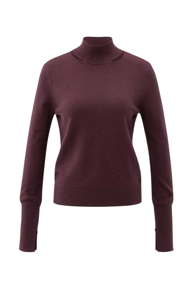 Deze fijngebreide trui is gemaakt van een zachte wolmix en heeft een opstaande col met elegante opengewerkte details bij de halslijn. De lange mouwen zijn voorzien van ribgebreide boorden met kleine splitten. De trui heeft een aangesloten pasvorm en een normale lengte. Een verfijnd item dat moeiteloos stijl en comfort combineert.