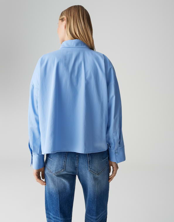 Casual elegantie wordt gedefinieerd door het innovatieve silhouet en de ongewone snit in katoenpopeline. Of je het nu op kantoor of casual draagt, dit overhemd maakt een modestatement met een wow-effect.